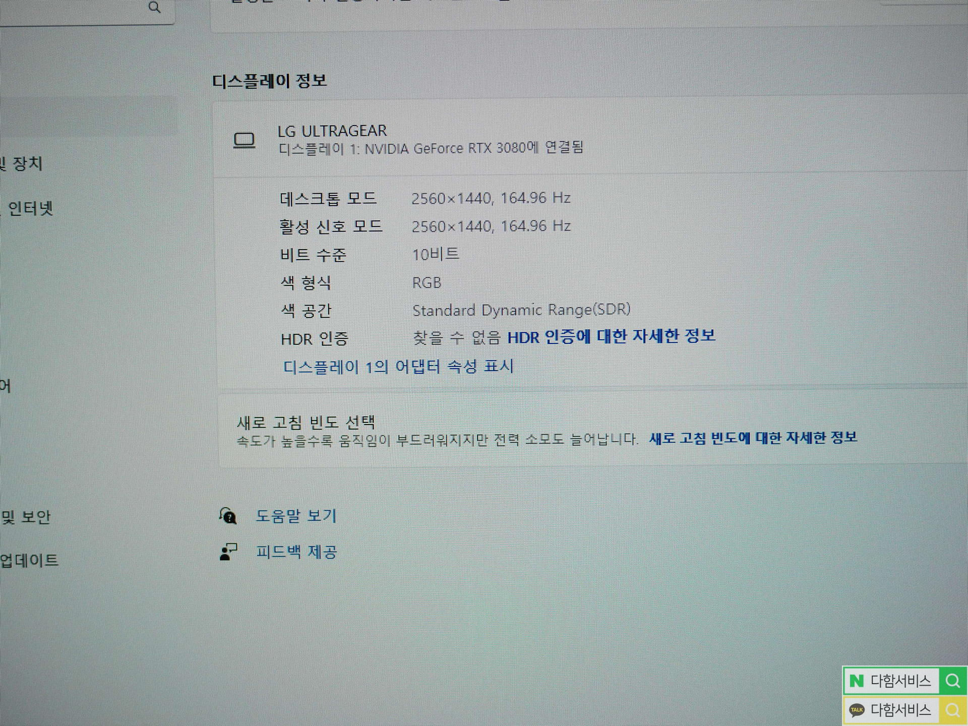 바탕화면에서 디스플레이 설정을 누르면 위와 같이 간단하게 모니터의 해상도와 주사율을 확인하실 수 있습니다.