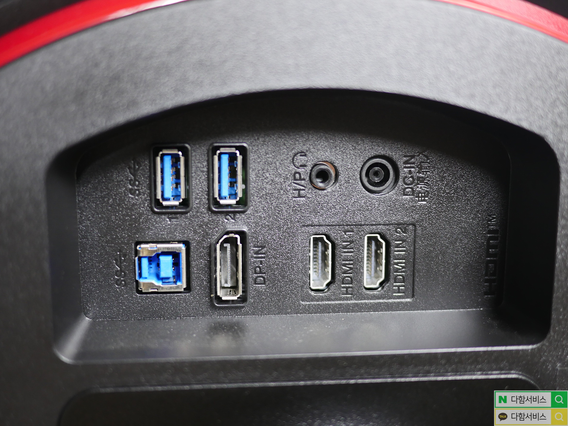 고급형 모니터답게 HDMI 단자 두개에 DP 단자 그리고 USB 단자 등도 여러개가 구성되어있습니다.
