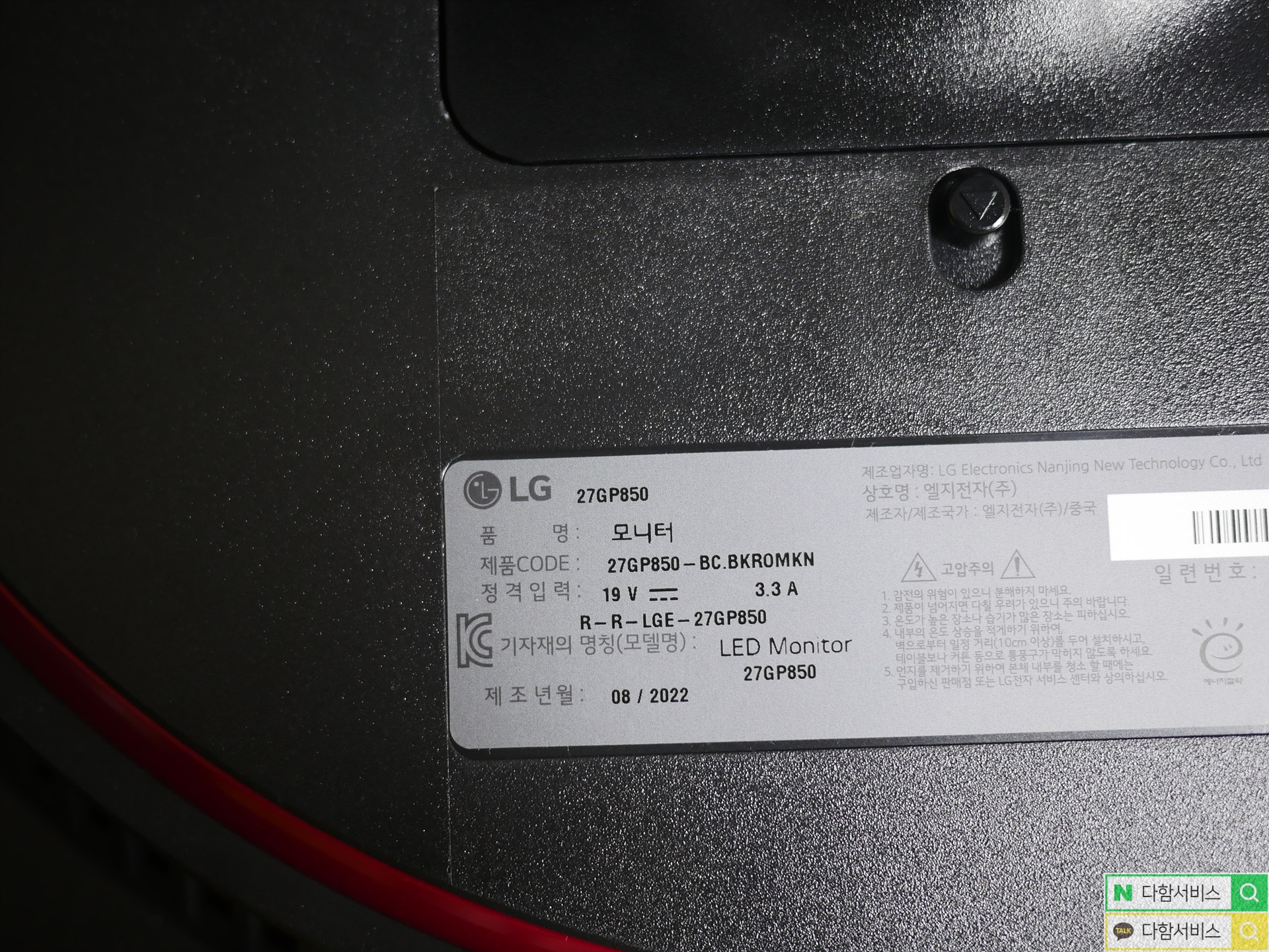 27GP850 입니다. 제조일자는 2022년 8월까지로 메인보드와 액정의 보증기간은 2024년 11월까지였습니다.